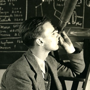 Photo: Unidentified man in Bard Observatory, c. 1938-42. Credit: Photo by Wendell MacRae. Courtesy of the Bard College Archives.