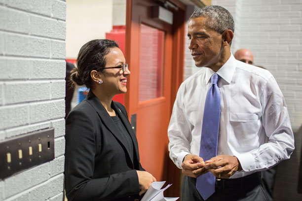 Photo: Betsaida Alcantara ’05 with President Obama.