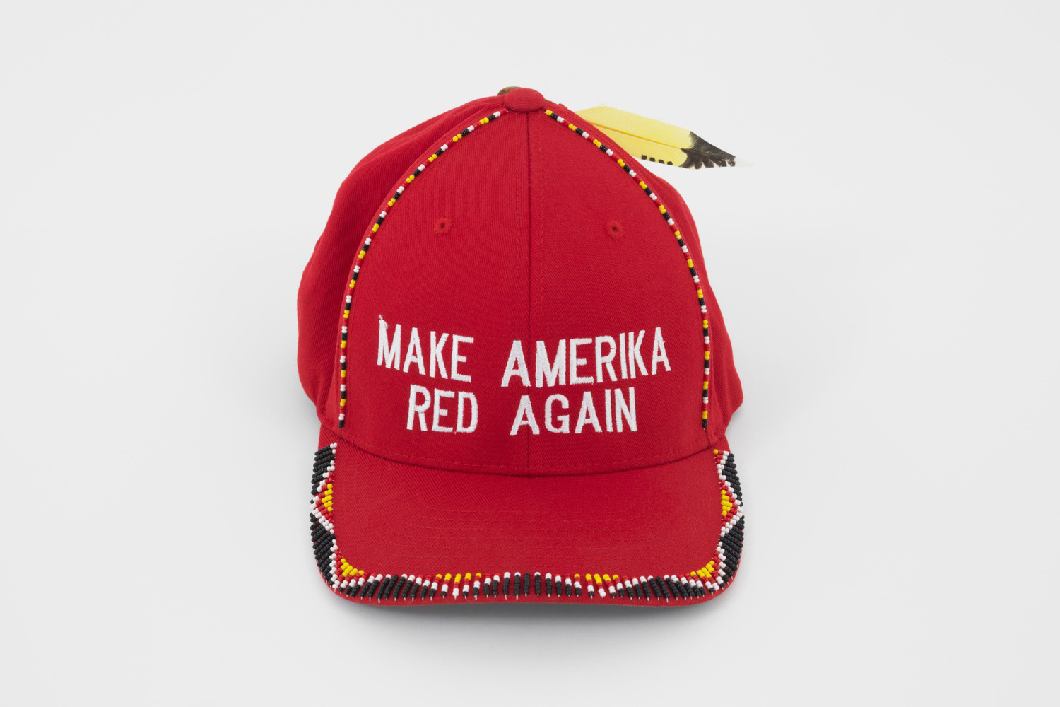 Her first show at the BMA in 2020, Stripes and Stars: Reclaiming Lakota Independence, was inspired by objects she found in the museum’s vault—children’s clothing with American flags in their Lakota beadwork designs. “These objects were conundrums for me. I asked myself, ‘Why would the Lakota people, at this moment of intense conflict with the US government, use the symbol of their oppressor on these objects?’ The question catapulted me into deep research into the history of the Lakota people, and the moment of their transition to the reservation in the late 19th century.” What she found was that the Lakota people leveraged patriotic images like the flag in order to make space for themselves to enact cultural practices that had been banned, such as giveaways and puberty ceremonies, all taking place under the cover of the American flag during “patriotic” celebrations like the Fourth of July. “Listening to the stories of the objects is a big part of my practice, as is engaging with community,” says Turner.