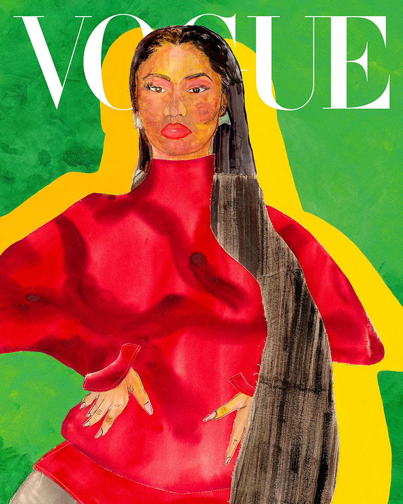 Tschabalala Self ’12, visiting artist in residence at Bard, talks about being asked to do a portrait of Nicki Minaj for Vogue’s December digital cover—using photographer Norman Jean Roy’s cover shoot as a starting point. “I do not usually delve too deeply into realism,” she says, “so by working on this project, I realized something I already suspected, which is that a portrait is more about capturing someone’s aura, as opposed to their appearance.”
