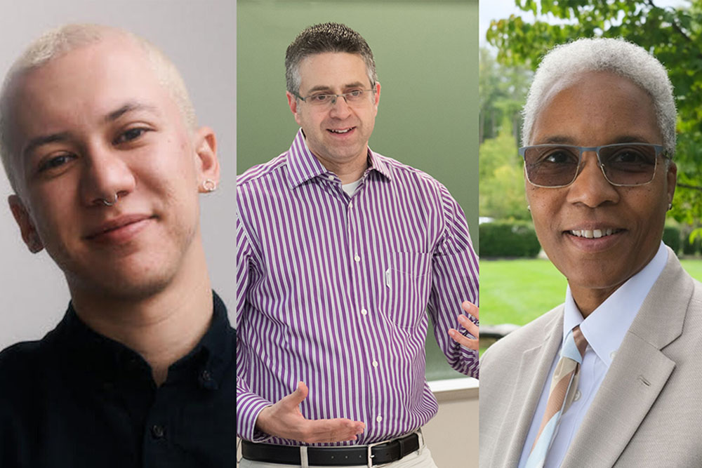 Photo: L-R: Bard alum Clark Wolff Hamel ’17, Provost of Bard College at Simon’s Rock John B. Weinsten, Director of the Bard Queer Leadership at Simon’s Rock Carla Stephens.