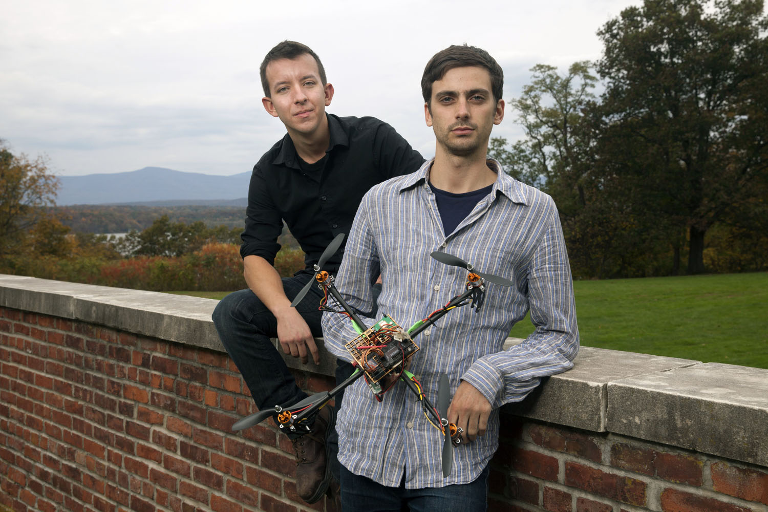 Photo: Dan Gettinger ’13 (left) and Arthur Holland Michel ’13, holding a